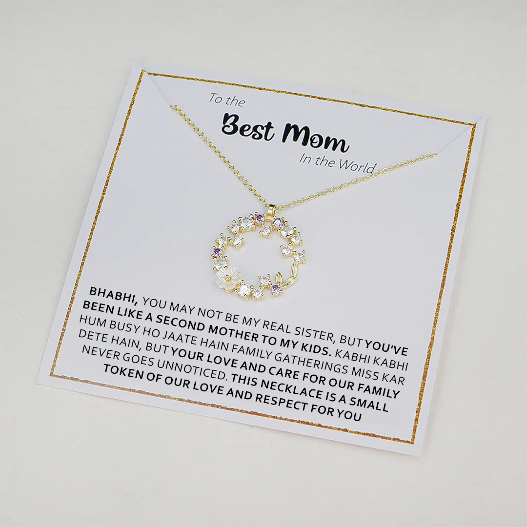 For the woman who has become more than family, the Ariana Blossom Necklace from Sister-in-Law is a meaningful symbol of love, respect, and the special moments you share. Featuring a radiant floral pendant with shimmering zircon stones, plated in 18K gold, this necklace for the Best Gift for Mom is a heartfelt way to honor her place in the family. Whether she’s a mother, a mentor, or a cherished friend, this gift celebrates her inner and outer beauty.