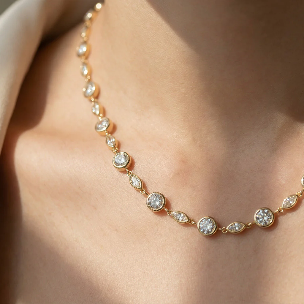 • Design: Classic tennis necklace silhouette