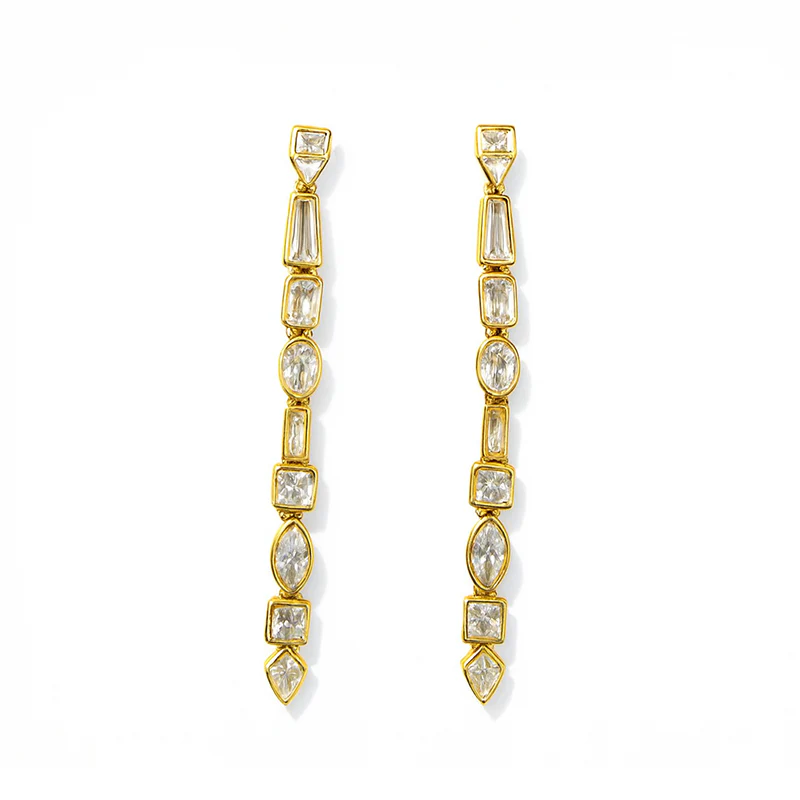 The Sophie Geometric Earrings for Women are a modern twist on classic Dangler. Crafted from 18k gold-plated stainless steel, their bold geometric shape makes them a statement piece youâll keep reaching for. Lightweight, waterproof, and hypoallergenic, these Geometric Earrings for Women are designed for effortless all-day wear.